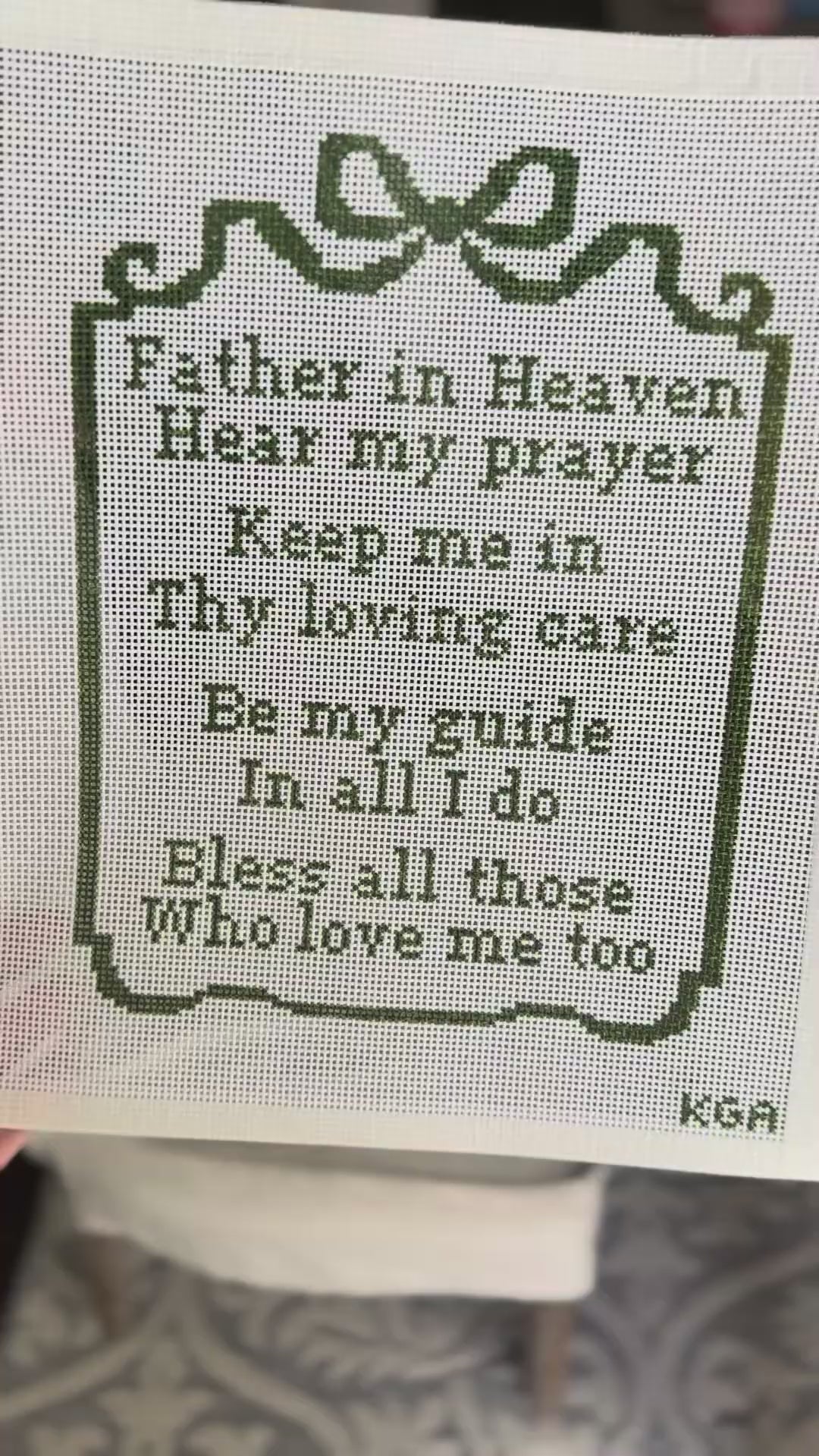 Design: Father in Heaven hear my prayer, Keep me in thy loving care, Be my guide in all I do, Bless those who love me too with a Bow Frame in Forest Green. Please know that the color can be changed, just send me an email at kristy@kristygoodingart.com to make a request!